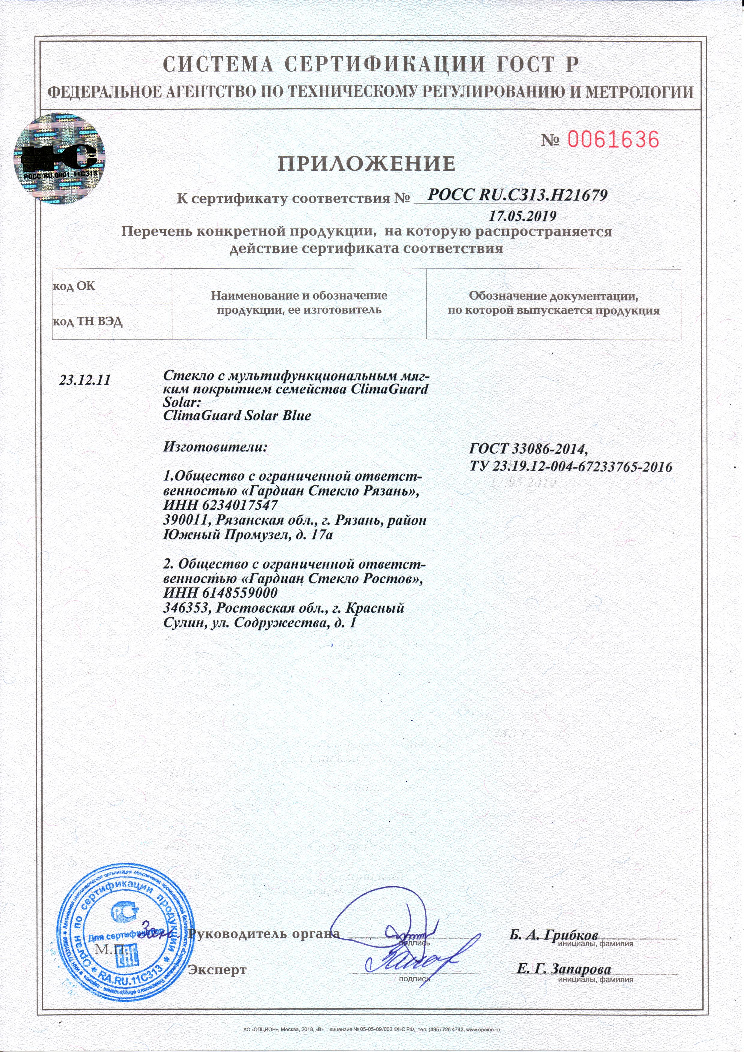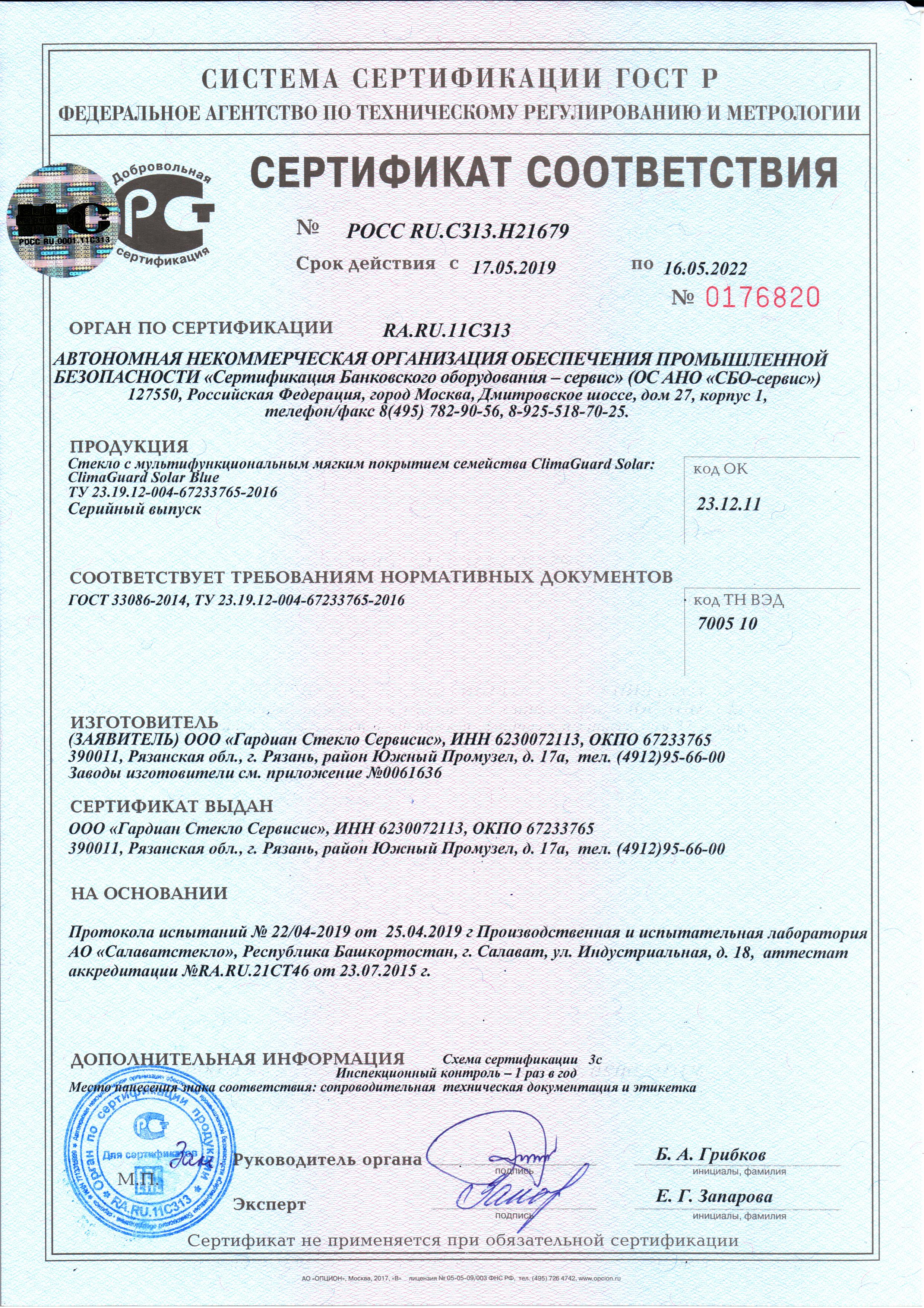 ClimaGuard Solar Blue. Приложение РОСС RU.C313.H21679