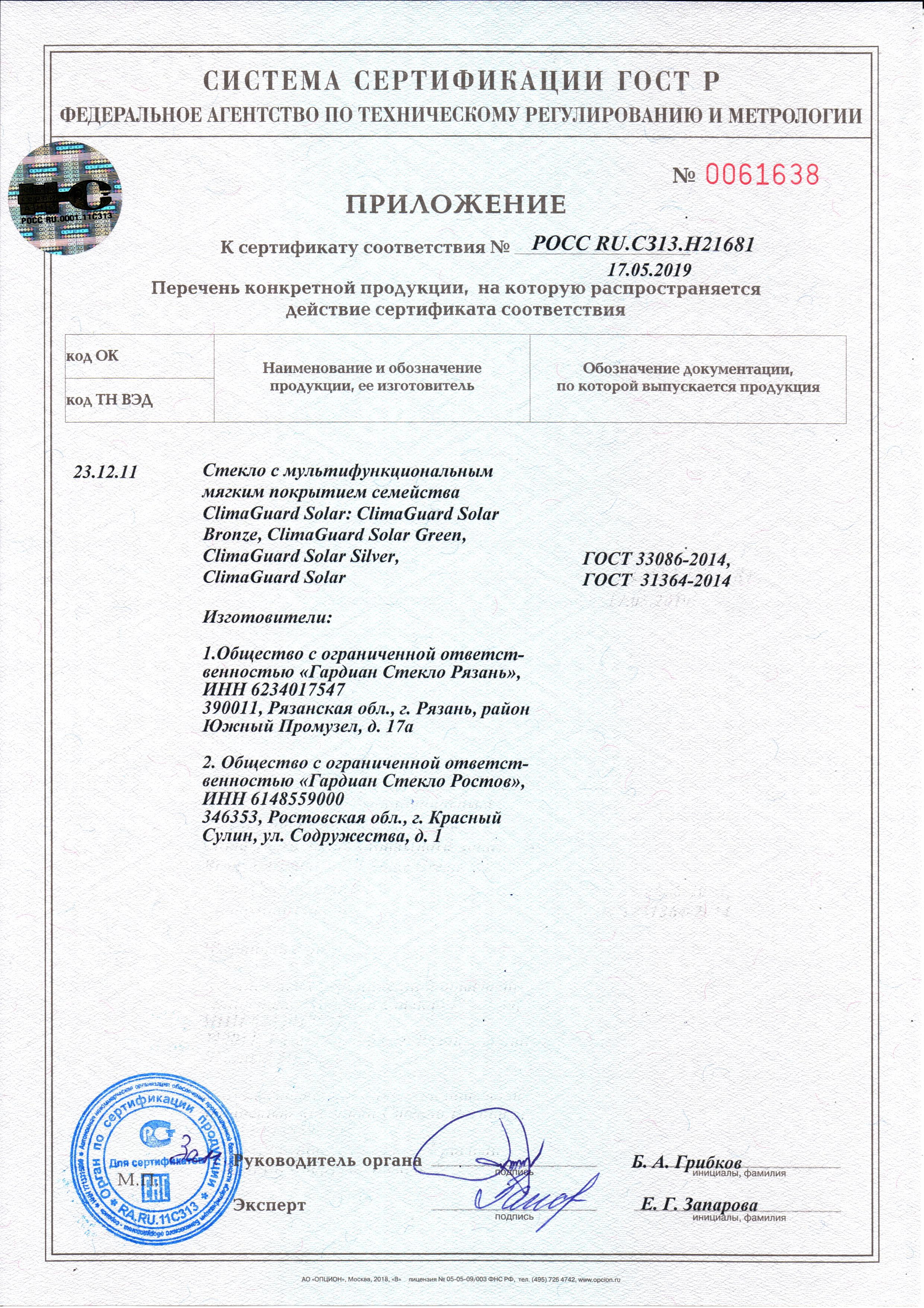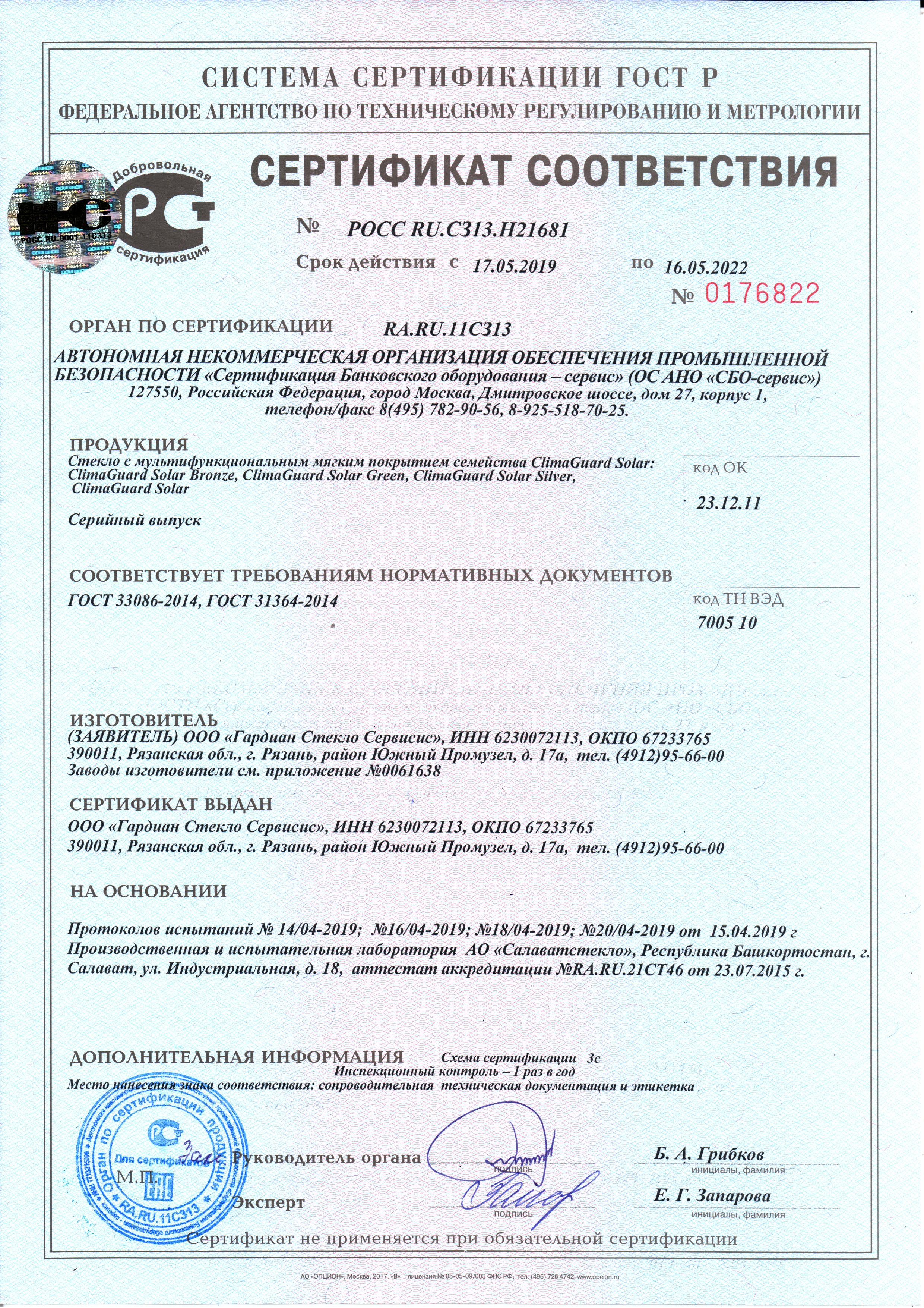 ClimaGuard Solar, Bronze, Green, Silver. Приложение РОСС RU.C313.H21681.