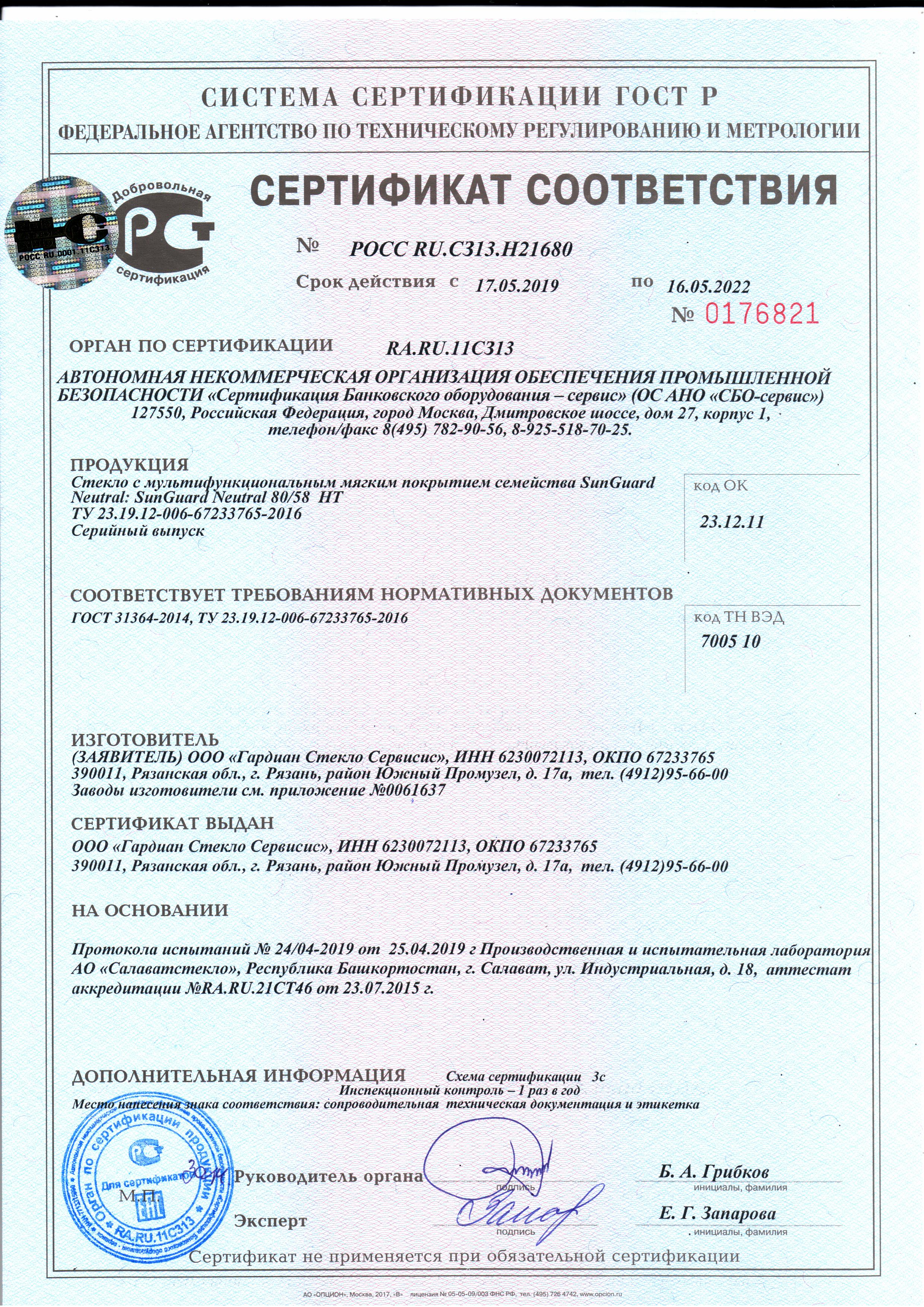 SunGuard Neutral 70 HT. РОСС RU.C313.H20522
